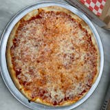 Thin crust square pan pizza layered with mozzarella cheese, fresh garlic, spotted with a flavorful herbed San Marzano tomato sauce.